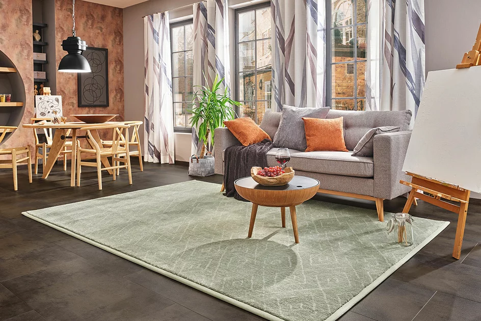 Hochflorige Teppiche profitieren von schmalen Paspeln oder der Kippkante. Diese Einfassungen lassen den Flor in den Vordergrund treten und sorgen für einen eleganten, dezenten Abschluss.