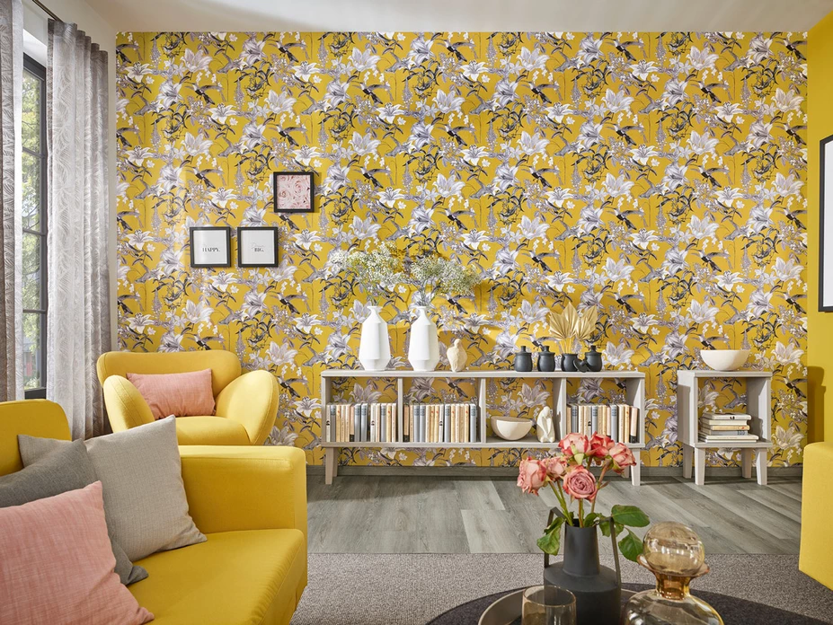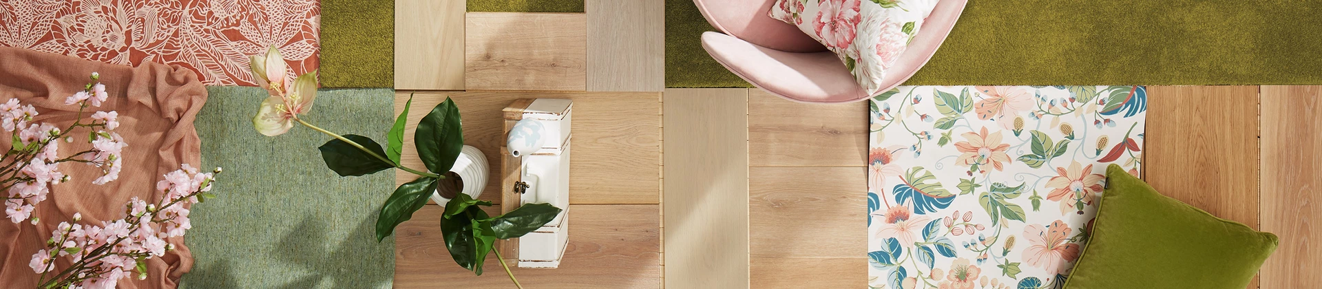 Bei diesem Trend verziert die Sommerwiese Tapeten und Wohnstoffe und sorgt für einen aufregenden Blickfang. Der blühende Garten wird so Teil des eigenen Zuhauses. Zurückhaltend schaffen helle Holzdekore eine natürliche Verbindung, Barfußfeeling lässt vor allem ein weicher Teppichboden in frischem Grün aufkommen.