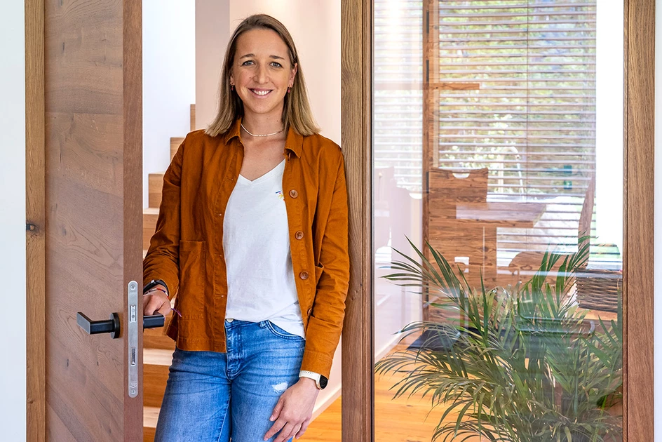 The interior doors connect the rooms seamlessly and blend harmoniously into the overall design of the house. On the living floor, Franzi and her partner opted for cosy wooden doors, while in the basement they opted for functional doors.